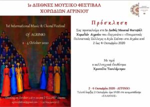 Έρχεται τον Οκτώβρη του 2020 το 1ο Διεθνές Φεστιβάλ Χορωδιών Αγρινίου