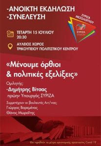 Εκδήλωση ΣΥΡΙΖΑ στο Μεσολόγγι με τον Δημήτρη Βίτσα