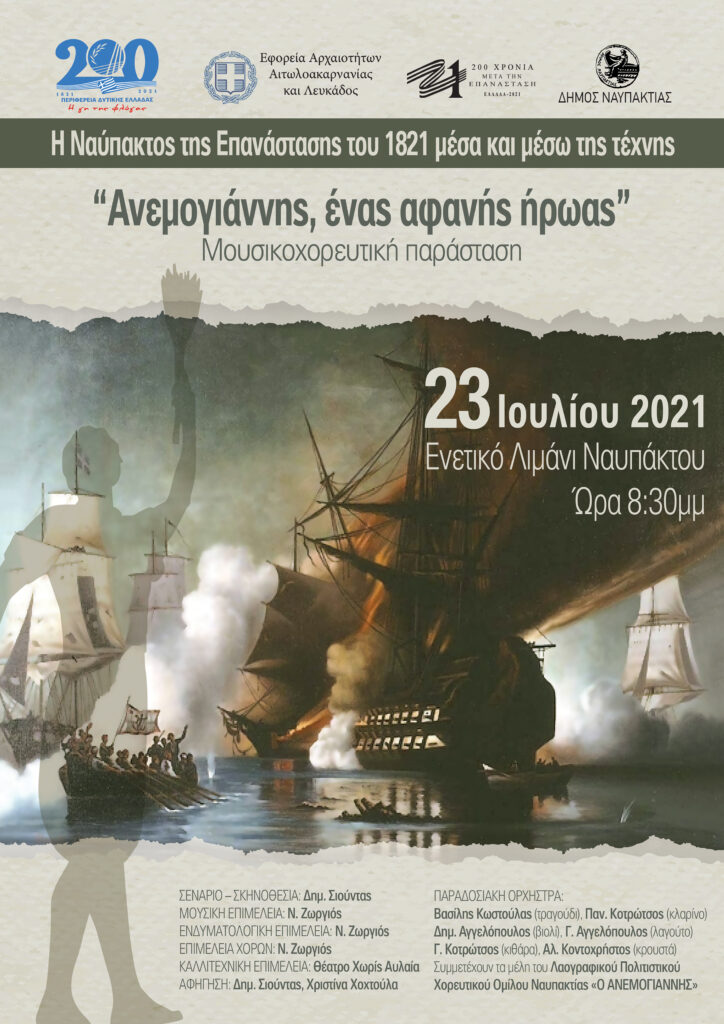 Ο Δήμος Ναυπακτίας, με αφορμή τον εορτασμό των 200 χρόνων από την Ελληνική Επανάσταση και στο πλαίσιο των Πολιτιστικών Εκδηλώσεων του φετινού Καλοκαιριού τιμά τον Γεώργιο Ανεμογιάννη-Παξινό. Ομάδα επαγγελματιών καλλιτεχνών της Ναυπάκτου συμπράττει και δημιουργεί ένα ξεχωριστό αφιέρωμα στον ήρωα πυρπολητή, στο οποίο αλληλεπιδρούν το παραδοσιακό τραγούδι, ο χορός και το θέατρο.