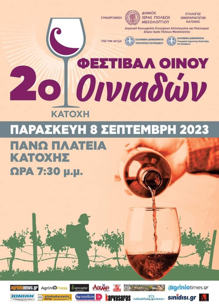 Την Παρασκευή 8 Σεπτέμβριου 2023 και ώρα 7:30 στην πάνω πλατεία της Κατοχής θα λάβει χώρα το 2ο Φεστιβάλ Οίνου Οινιαδών μια διοργάνωση που πραγματοποιήθηκε πρώτη φορά πέρσι την ίδια εποχή με τεράστια συμμετοχή φορέων, παραγωγών και κόσμου και καθιερώθηκε πλέον ως τοπική εορτή για την εγκαινίαση της περιόδου της συγκομιδής του σταφυλιού, της παραγωγής του κρασιού και των υποπροϊόντων της αμπέλου.