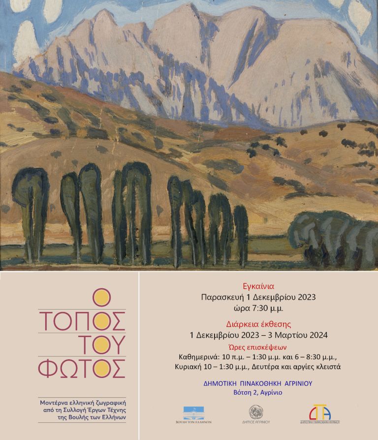 Η ΔΗΜΟΤΙΚΗ ΠΙΝΑΚΟΘΗΚΗ ΑΓΡΙΝΙΟΥ παρουσιάζει την έκθεση “Ο Τόπος του Φωτός”, μια τιμητική προσφορά της Βουλής των Ελλήνων για τα 10 χρόνια λειτουργίας της ΔΠΑ, με επιλογές από τη Συλλογή Έργων Τέχνης της.