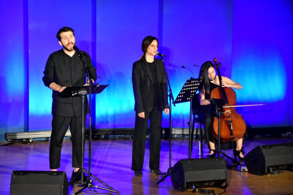 Ο συνθέτης Δημήτρης Μαραμής στο πιάνο, ο τραγουδιστής Θοδωρής Βουτσικάκης, η αφηγήτρια Μαρίνα Καλογήρου και η τσελίστρια Στέλλα Στέμπρελη, προκάλεσαν ρίγη συγκίνησης στους παρευρισκόμενους στην αίθουσα εκδηλώσεων της Περιφερειακής Ενότητας Αιτωλοακαρνανίας στο Μεσολόγγι, που είχαν την ευκαιρία να παρακολουθήσουν την μουσική παράσταση «Όποιος πεθάνει σήμερα, χίλιες φορές πεθαίνει», χθες Τρίτη, 16 Απριλίου 2024.
