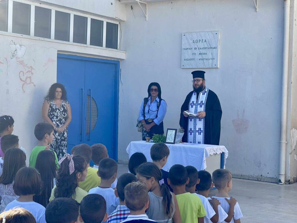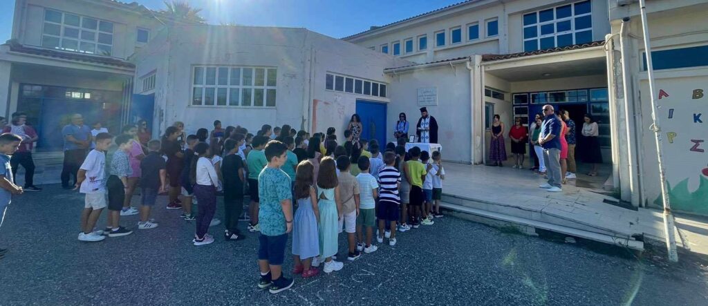 Τον Αγιασμό τέλεσε ο Πάτερ Στέκας Ιωάννης, παρουσία των μαθητών, των γονέων και κηδεμόνων και με μια μόνο αιρετή παρουσία αυτή της Προέδρου της Δημοτικής Κοινότητας Νεοχωρίου κας Κασσιανής Παπαδημητρίου ως εκπροσώπου της Δημοτικής Αρχής.