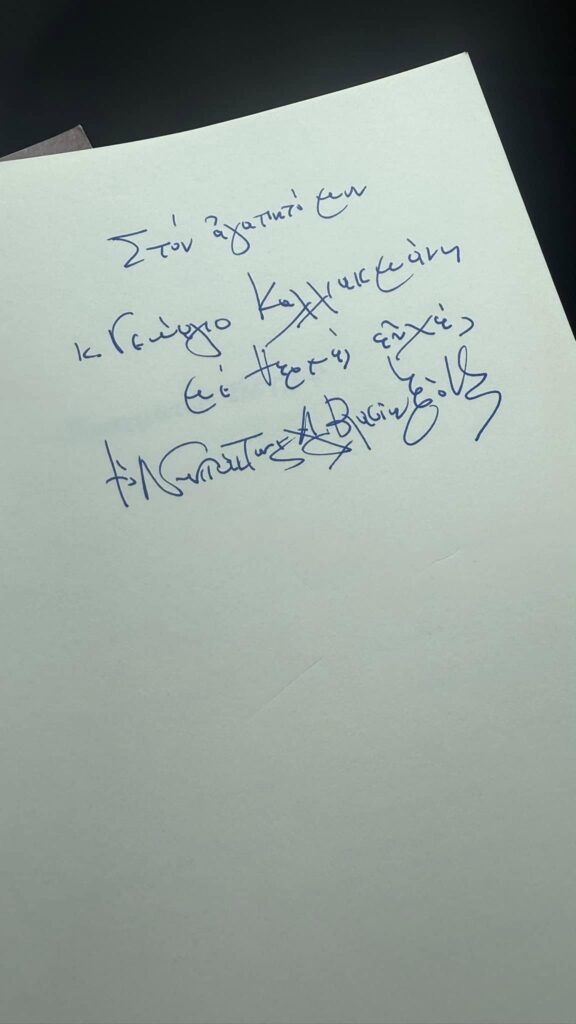 Επίσης, ο Σεβασμιότατος μου χάρισε ένα από τα δεκάδες βιβλία που έχει συγγράψει, το οποίο και μου αφιέρωσε. Τον ευχαριστώ για την θερμή υποδοχή και τον ευγνωμονώ για την ευχή και την ευλογία του.
