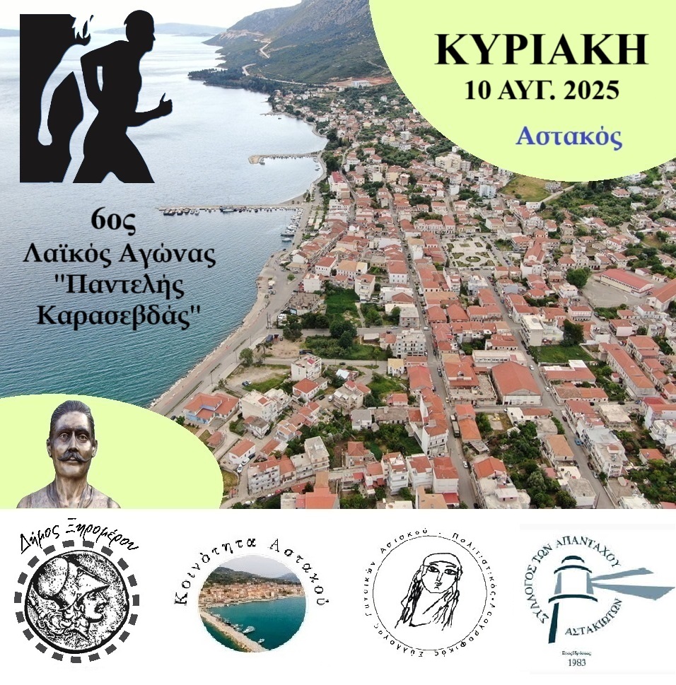 Ο Δήμος Ξηρομέρου, η Κοινότητα Αστακού, ο Σύλλογος Απανταχού Αστακιωτών και ο Σύλλογος Γυναικών Αστακού, συνδιοργανώνουν την Κυριακή 10/08/2025, τον 6ο Λαϊκό Αγώνα Αστακού «Παντελής Καρασεβδάς» στην πόλη του Αστακού.