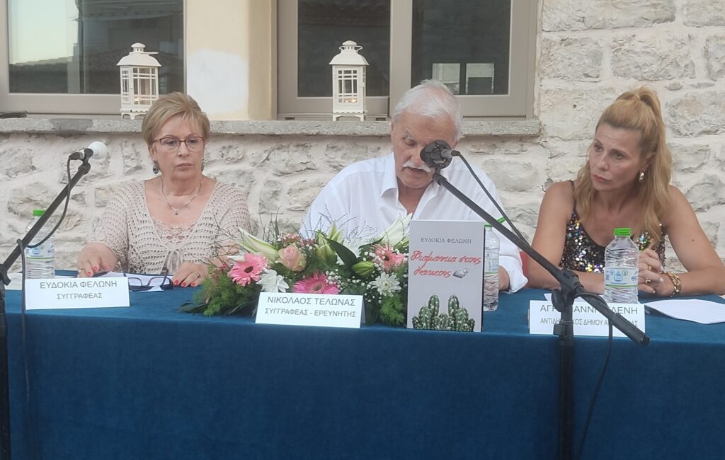 Το βιβλίο προλόγισε ο συγγραφέας και πρώην Δήμαρχος Αμφιλοχίας, Νικόλαος Χ. Τέλωνας και στη συνέχεια τον λόγο είχε η συγγραφέας Ευδοκία Φελώνη. Διαβάστηκαν επίσης αποσπάσματα από τις μαθήτριες Δώρα Λιανού και Μελίνα Μολώνη κι ακολούθησαν τιμητικές βραβεύσεις και μουσικό πρόγραμμα.