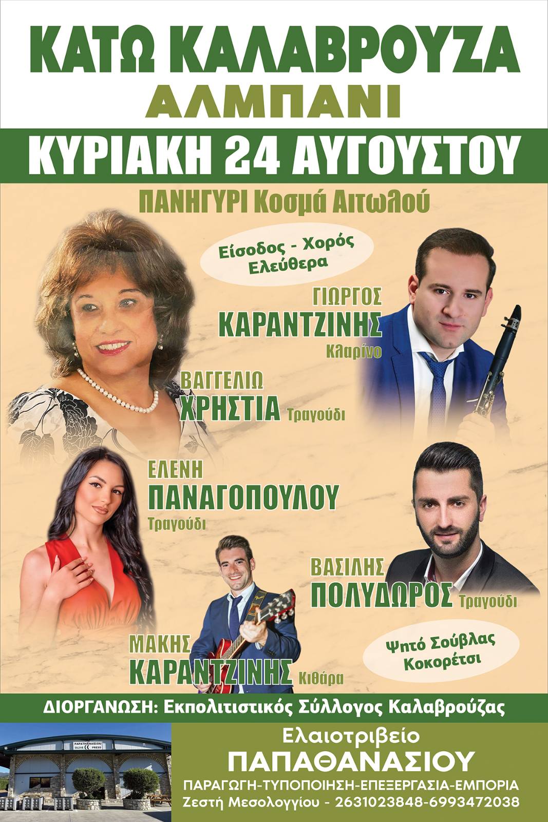 Διοργάνωση: Εκπολιτιστικός Σύλλογος Καλαβρούζας