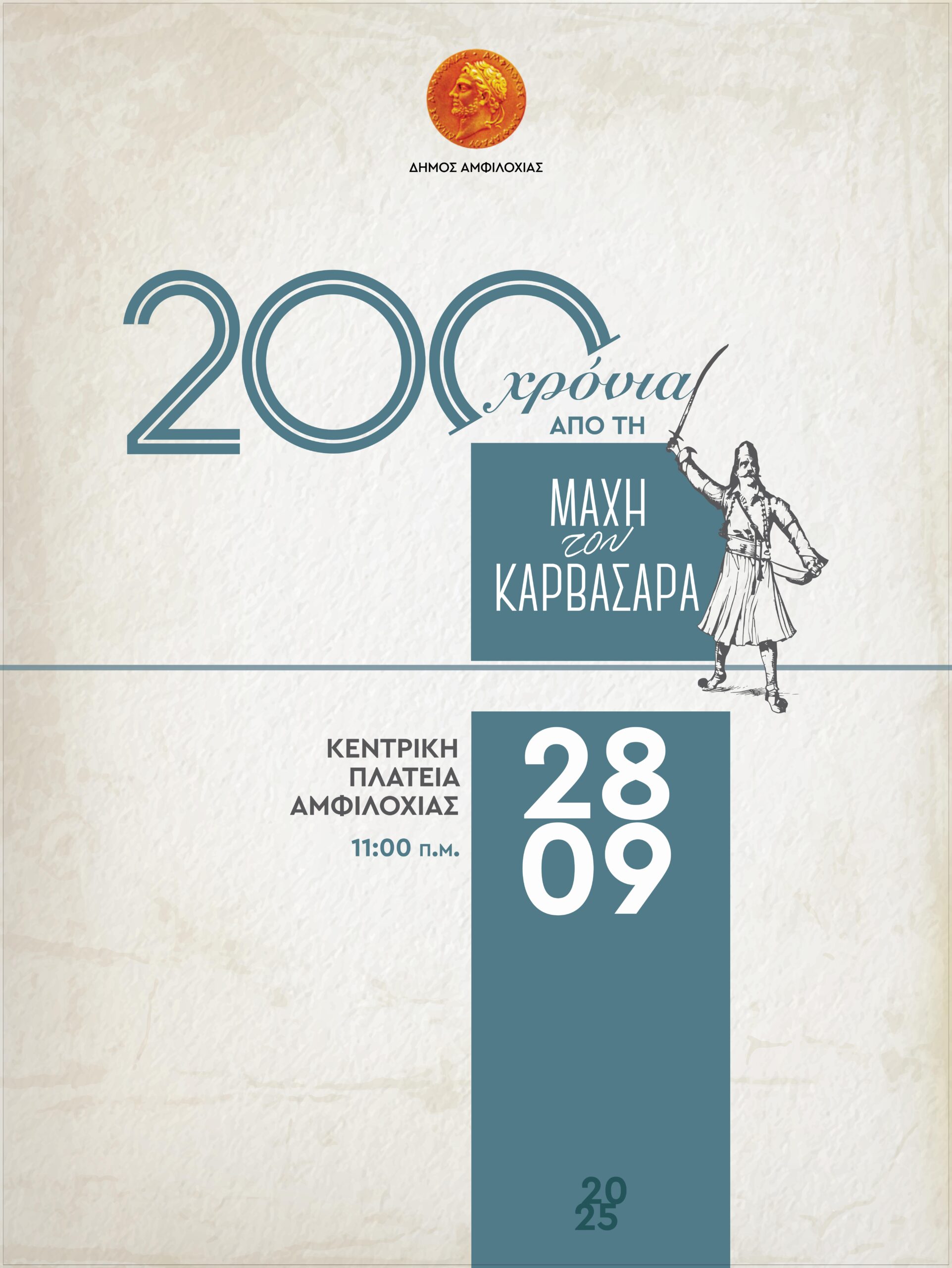 Η Αμφιλοχία ετοιμάζεται να φορέσει τα γιορτινά της για να τιμήσει τα 200 χρόνια από την ιστορική Μάχη του Καρβασαρά, που δόθηκε τη νύχτα της 28ης Σεπτεμβρίου 1825.