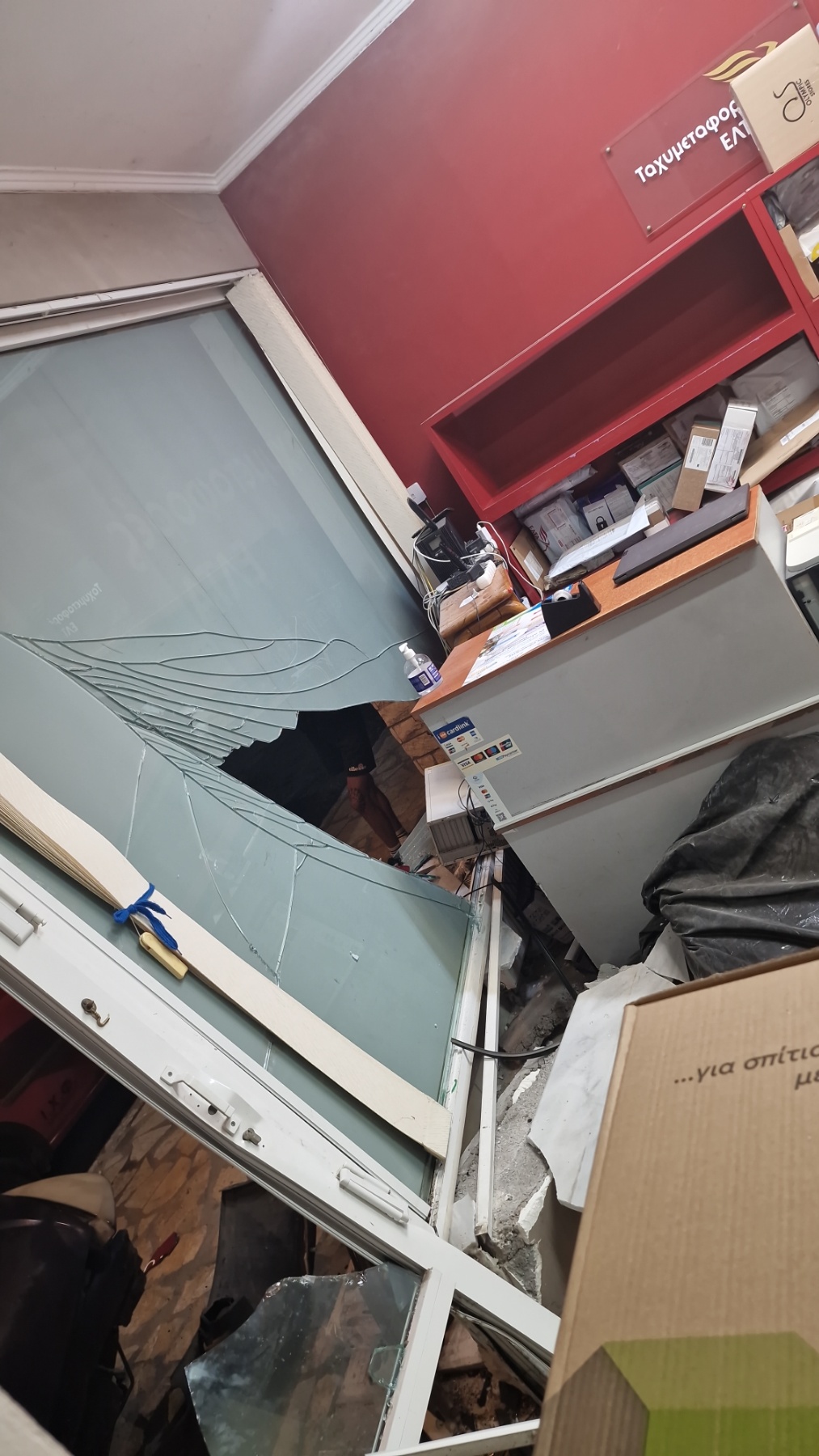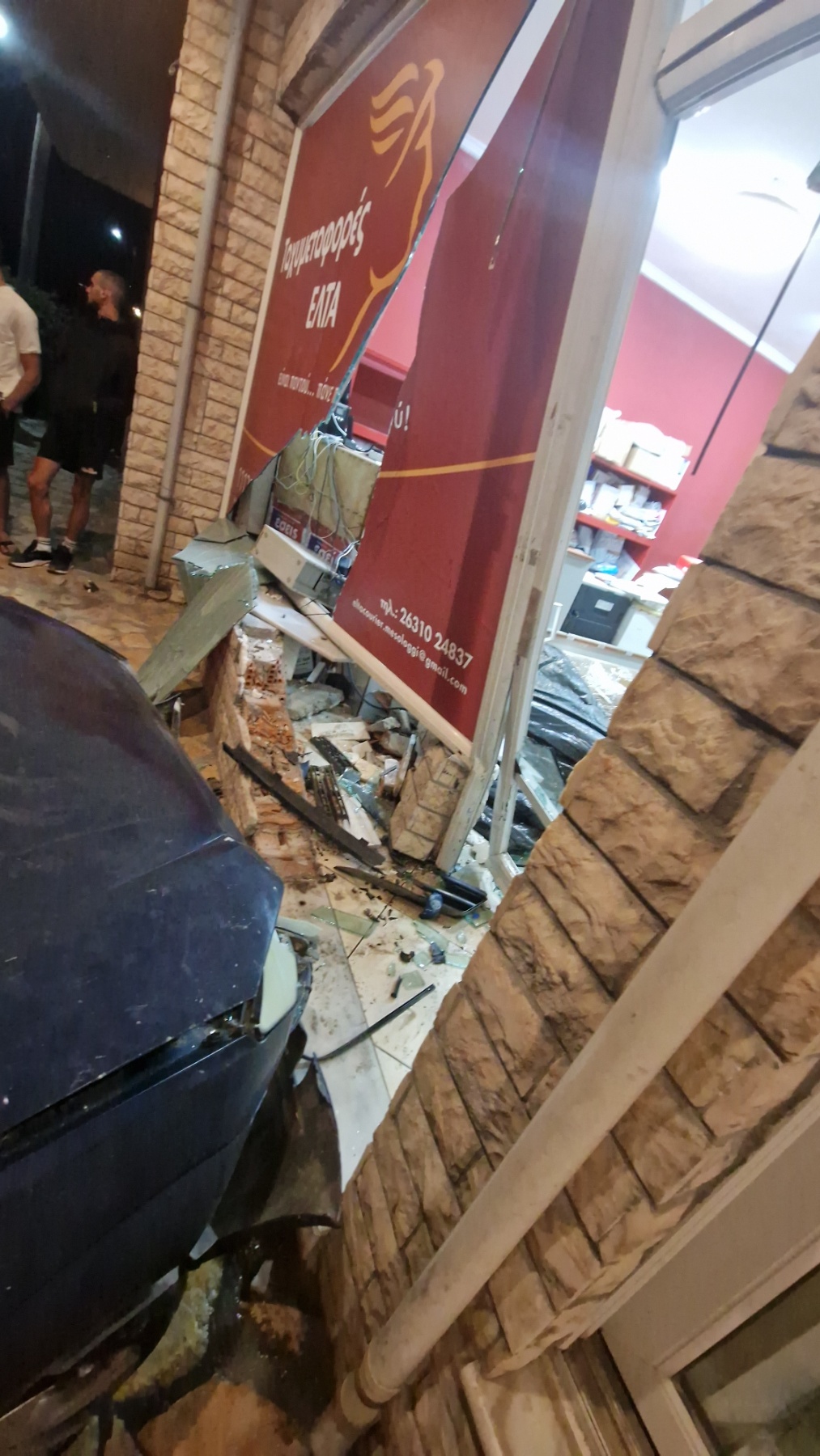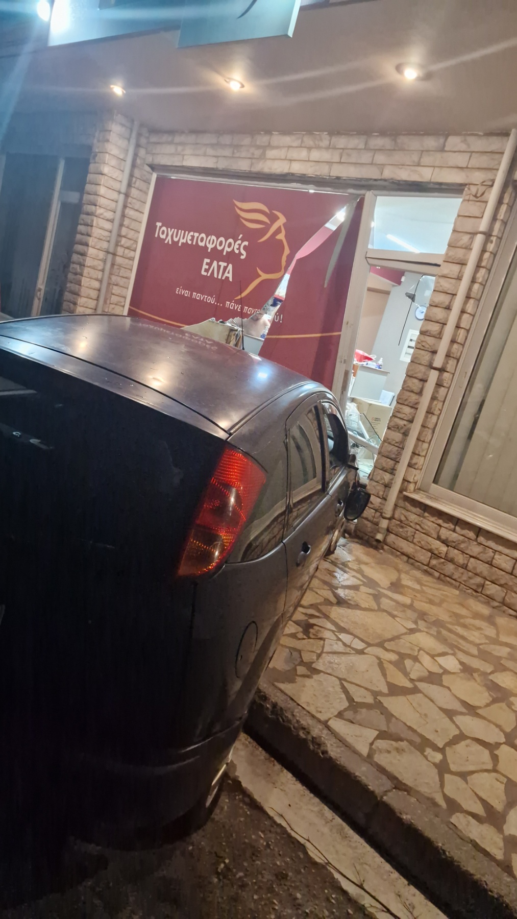 Ο νεαρός οδηγός αν και ελαφρά τραυματισμένος μετά τη σύγκρουση σηκώθηκε και έφυγε αφήνοντας το αυτοκίνητο σφηνωμένο μέσα στο κατάστημα.