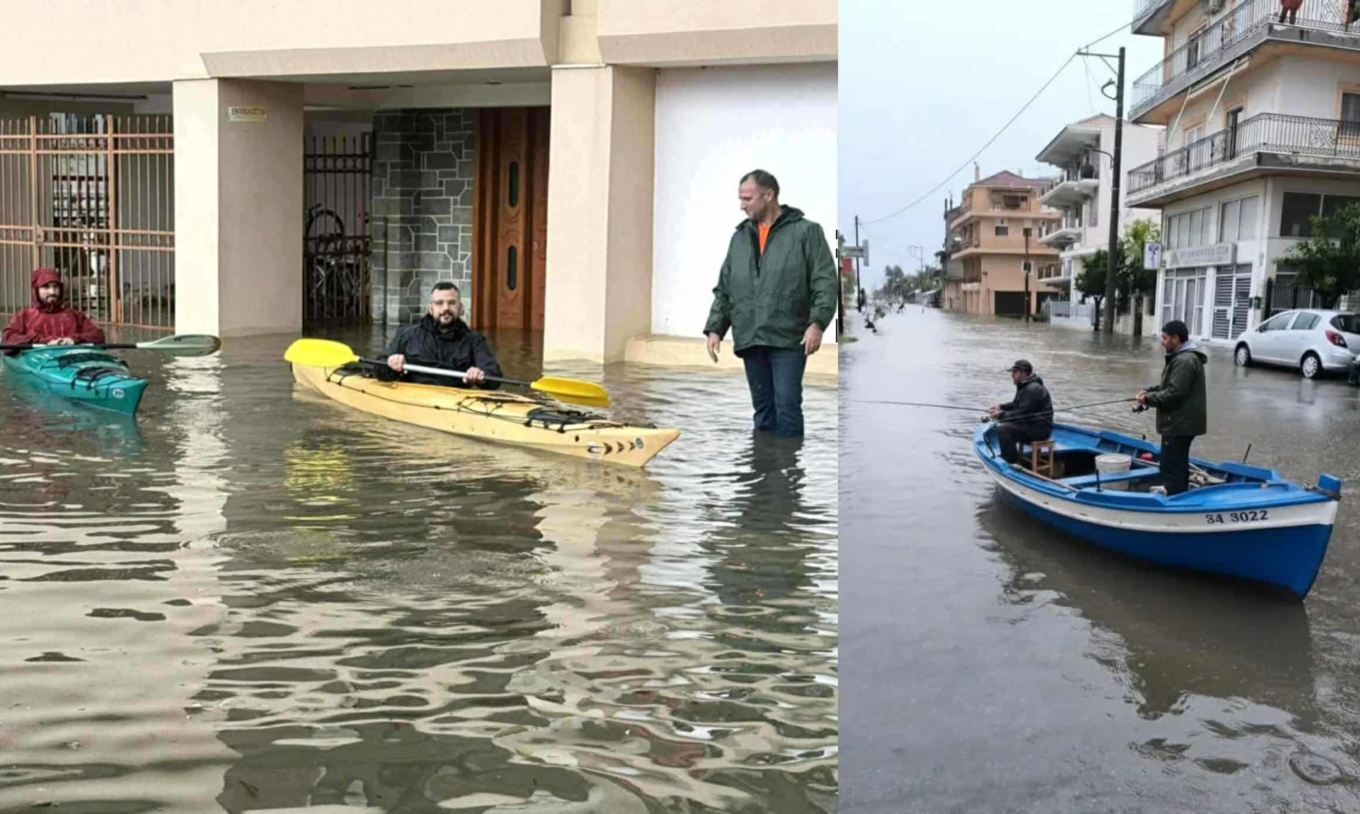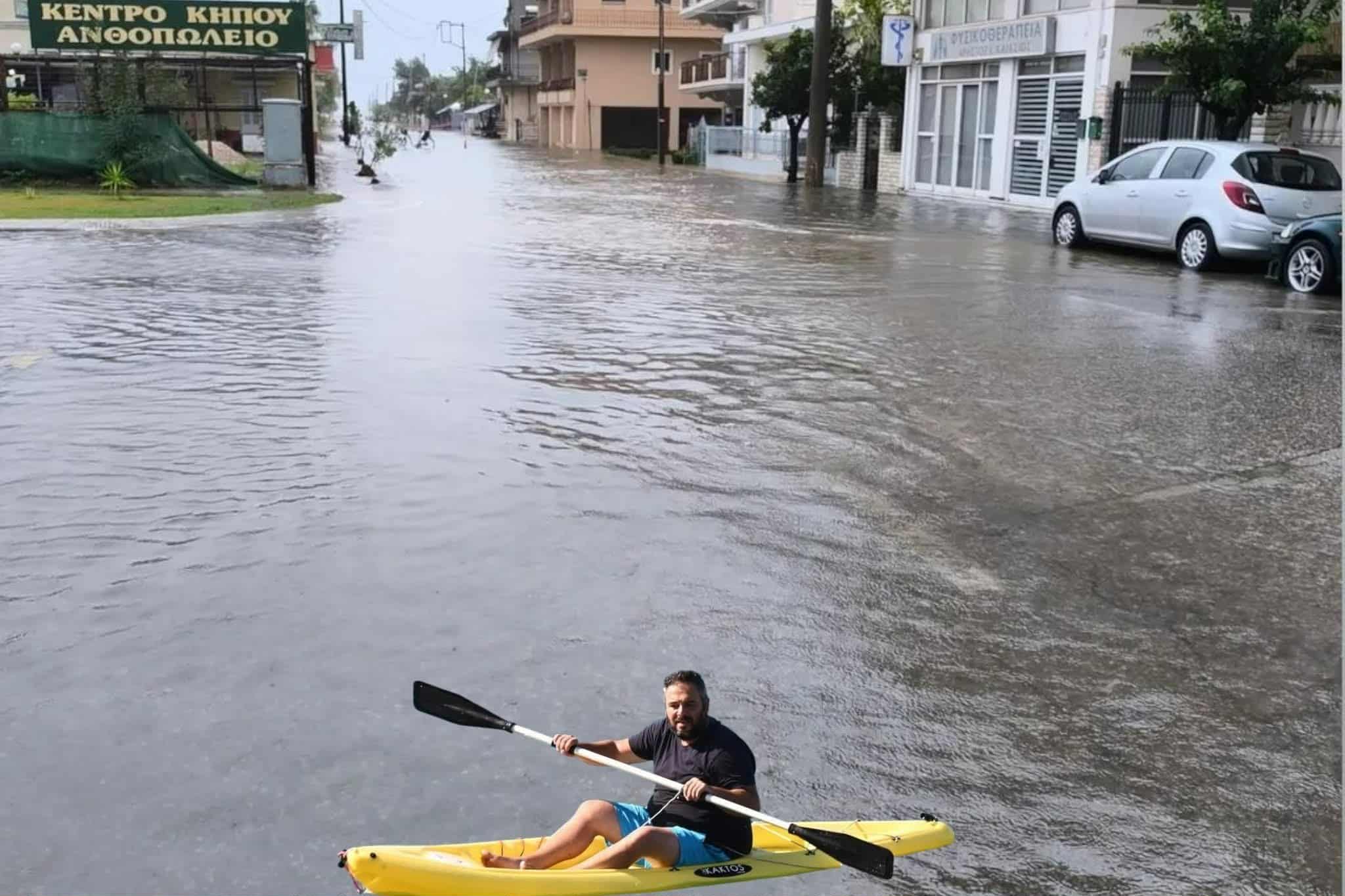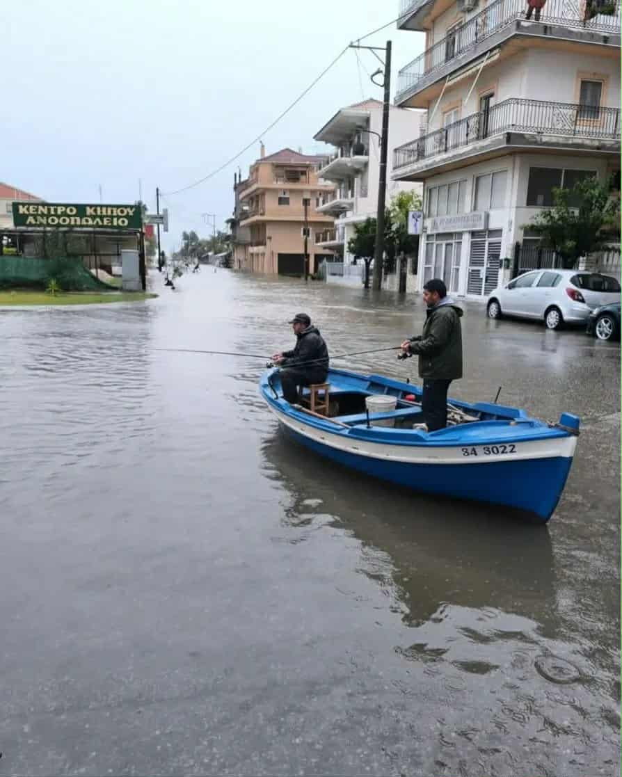 Παρά τις δύσκολες συνθήκες λόγω της πλημμύρας στο Μεσολόγγι, πολλοί πολίτες θέλησαν να αποτυπώσουν με χιούμορ την τραγική κατάσταση στους δρόμους – ποταμούς, με κάποιους τολμηρούς να μη διστάζουν να βγουν για μια βαρκάδα στο κέντρο της πόλης.