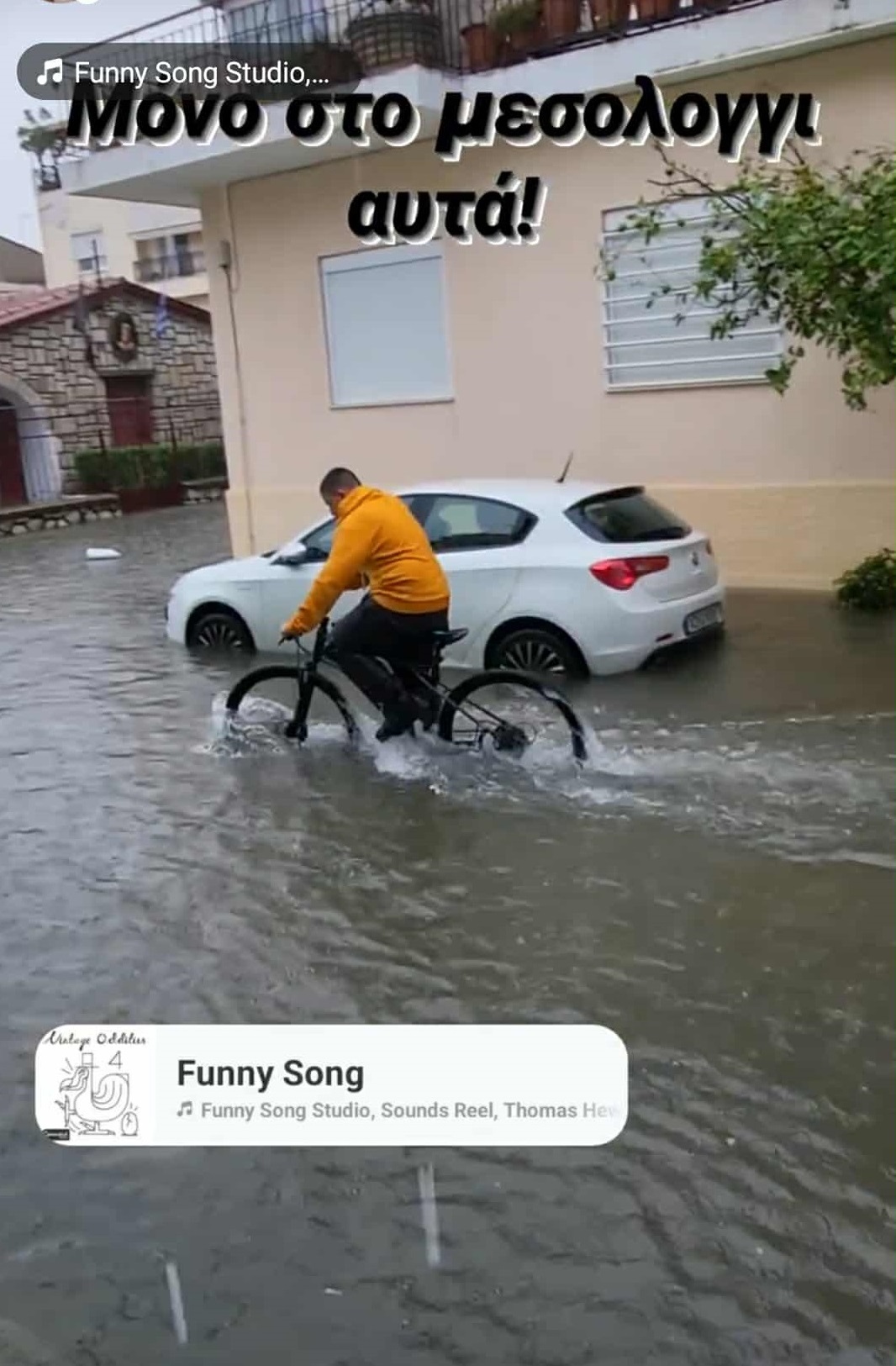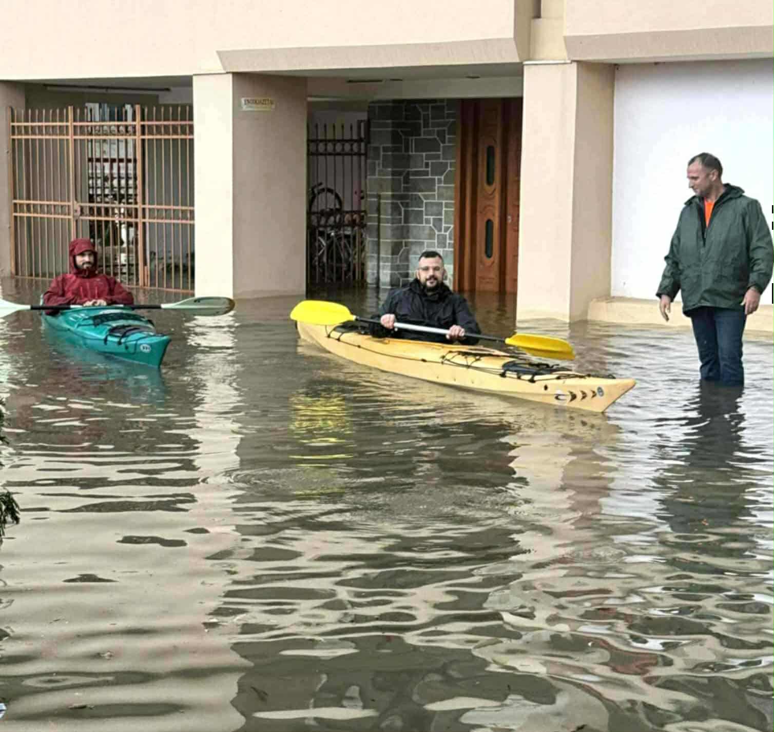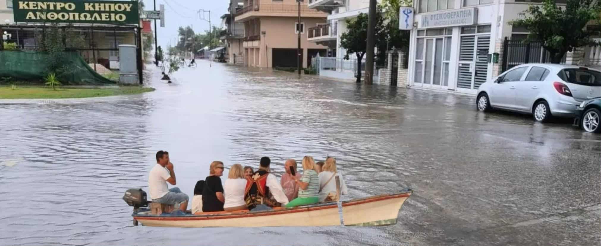 Παρά τις δύσκολες συνθήκες λόγω της πλημμύρας στο Μεσολόγγι, πολλοί πολίτες θέλησαν να αποτυπώσουν με χιούμορ την τραγική κατάσταση στους δρόμους – ποταμούς, με κάποιους τολμηρούς να μη διστάζουν να βγουν για μια βαρκάδα στο κέντρο της πόλης.