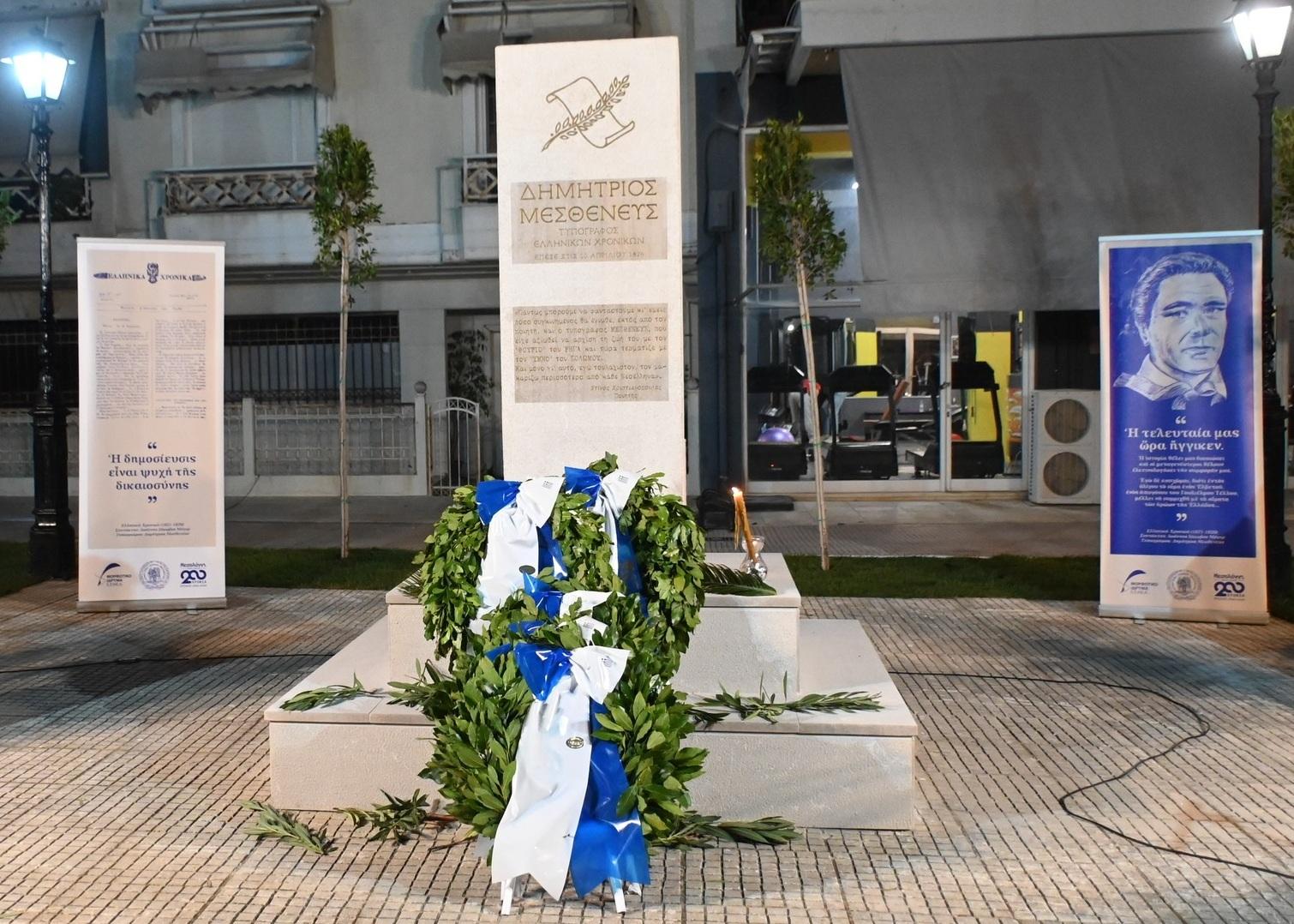 Το Σάββατο 15 Νοεμβρίου ο Δήμος της Ιερής Πόλης του Μεσολογγίου σε συνεργασία με την ΕΣΗΕΑ τίμησε τον τυπογράφο των Ελληνικών Χρονικών Δημήτριο Μεσθενέα με τα αποκαλυπτήρια της αναθηματικής στήλης προς τιμήν του και με την επιτυχή εκδήλωση που ακολούθησε στο κτίριο Χρυσόγελου. Ήταν μια οφειλόμενη τιμή και χρέος της Ιερής Πόλης προς ένα ακόμα αγωνιστή της ελευθερίας και πεσόντα της ηρωϊκής εξόδου, που καθυστέρησε πάρα πολύ και ενδεχομένως να μην συνέβαινε και ποτέ. Συνέβη όμως, γιατί υπήρχε κάποιος που το πρότεινε και το εισηγήθηκε τεκμηριωμένα στο Δήμο.