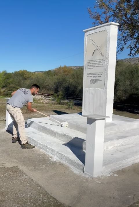 Ο Αντιδήμαρχος σήκωσε μανίκια και μαζί με υπαλλήλους της Υπηρεσίας Καθαριότητας, κατάφεραν ένα σημείο περικυκλωμένο από σκουπίδια, χόρτα, παρατημένο στη λήθη και φθορά του χρόνου, να το μεταμορφώσουν μετά από γενικό καθαρισμό του περιβάλλοντος χώρου, επιδιορθώσεις σε φθορές και ασβέστωμα στη βάση του και να το παραδώσουν καθαρό και φωτεινό στους συντοπίτες αλλά και στους διερχόμενους που σταματούν να το θαυμάσουν.