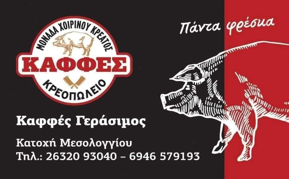 Στο κρεοπωλείο του Γεράσιμου Καφφέ, στην περιμετρική Κατοχής θα βρείτε μοσχάρι και χοιρινά παραγωγής, αλλά και νωπά κρέατα, όπως επίσης τη σπεσιαλιτέ το χοιρινό λουκάνικο, όλα από τη φάρμα κατευθείαν στο πιάτο σας.
