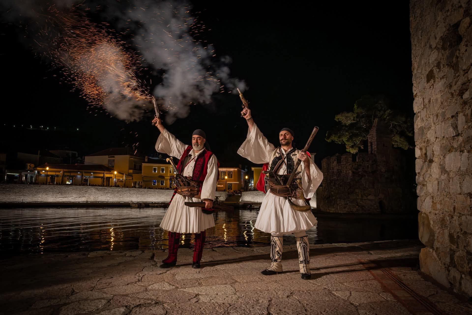 Η δεύτερη ημέρα των εορτασμών για την 197η Επέτειο της Απελευθέρωσης της Ναυπάκτου από τον οθωμανικό ζυγό κορυφώθηκε με την Πομπή των Αρματωμένων και το θεατρικό δρώμενο που παρουσιάστηκε στον δυτικό βραχίονα του Ενετικού Λιμανιού, παρουσία πλήθους κόσμου. Με τη συνοδεία Φιλαρμονικών, η πομπή διέσχισε την παραλιακή οδό Ναυμαχίας Ναυπάκτου και κατέληξε στο Λιμάνι. Εκεί, τα μέλη του Συλλόγου Αναβίωσης Απογόνων Σουλιωτών Ναυπακτίας «Έπαχτος» παρουσίασαν δρώμενο αφιερωμένο στον Αγώνα των Ελλήνων Οπλαρχηγών και στη σύνδεση της Ναυπάκτου με την πορεία προς την ελευθερία και τη συγκρότηση του νεότερου ελληνικού κράτους.