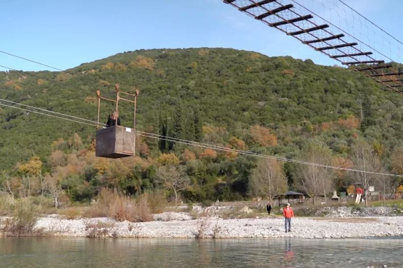 Καρέλι: Το χειροκίνητο «τελεφερίκ» του Εύηνου ποταμού (vid)