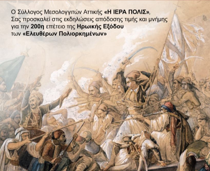 Διήμερο εκδηλώσεων μνήμης και τιμής από τον Σύλλογο Μεσολογγιτών Αττικής για τα 200 χρόνια