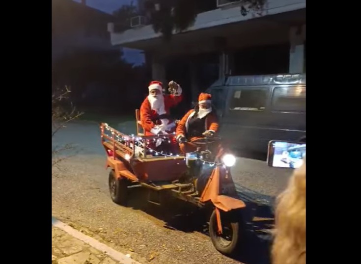 Με τρίκυκλο έφτασε ο Αϊ Βασίλης και μοίρασε γλυκίσματα στην Καμαρούλα Αγρινίου (vid)